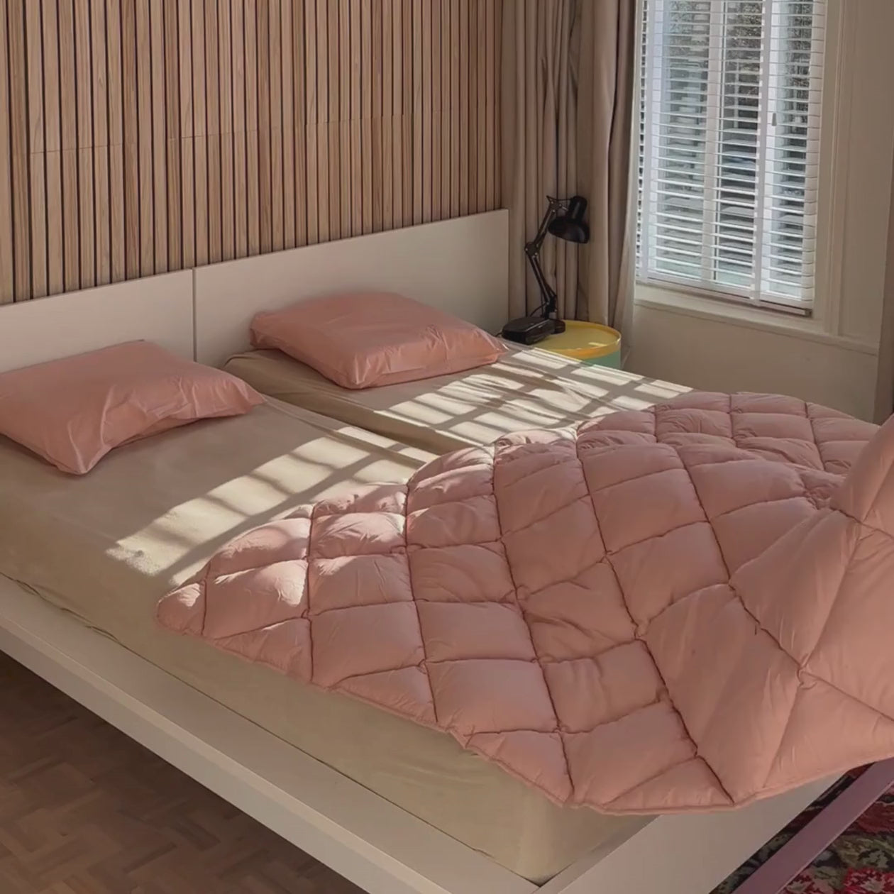 Die Premium Vintage Pink Bettdecke bringt zeitlosen Charme und kuschelige Weichheit in einem eleganten Design zusammen. Der dezente Rosaton verleiht deinem Schlafzimmer eine warme, romantische Stimmung. Die Premium Kollektion von HappyBed besteht aus hochwertigem Perkal-Baumwolle, das für sein frisches, weiches und luxuriöses Hautgefühl bekannt ist. Perfekt für alle, die auf Stil, Qualität und ultimativen Schlafkomfort stehen. Das Bett ist in 10 Sekunden gemacht und super easy zu waschen. Sag Tschüss zu nervigen Bettbezügen und wach jeden Tag mit einem fetten Grinsen erholt auf.