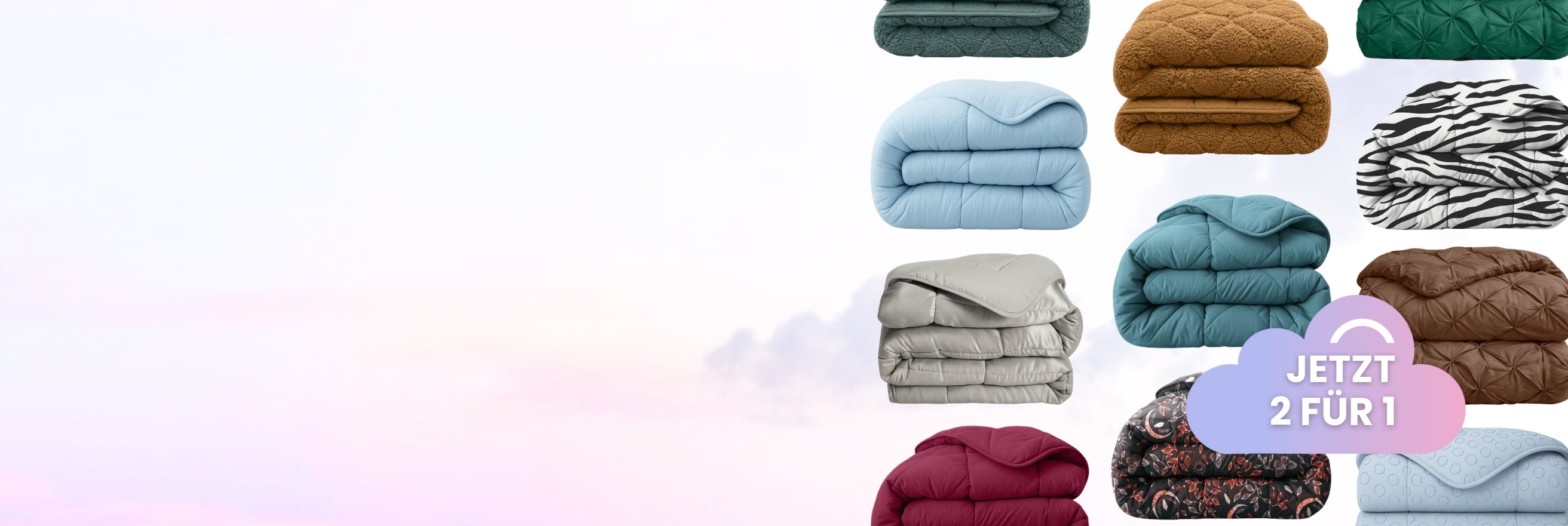 Kombiniere alle Bettdecken dieser Kollektion nach Belieben. Leg zwei Stück in deinen Warenkorb und die zweite ist sofort gratis.